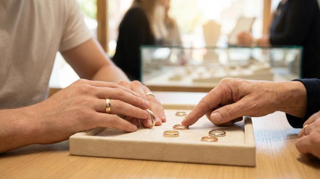Mange bliver overraskede over, hvor hurtigt man kan mærke forskel på bredde, profil og overflade, når man prøver ringe på fingeren. Noget ser måske flot ud i montren, men føles ikke rigtigt, når det sidder på hånden. Det er præcis derfor, et fysisk møde er værdifuldt.